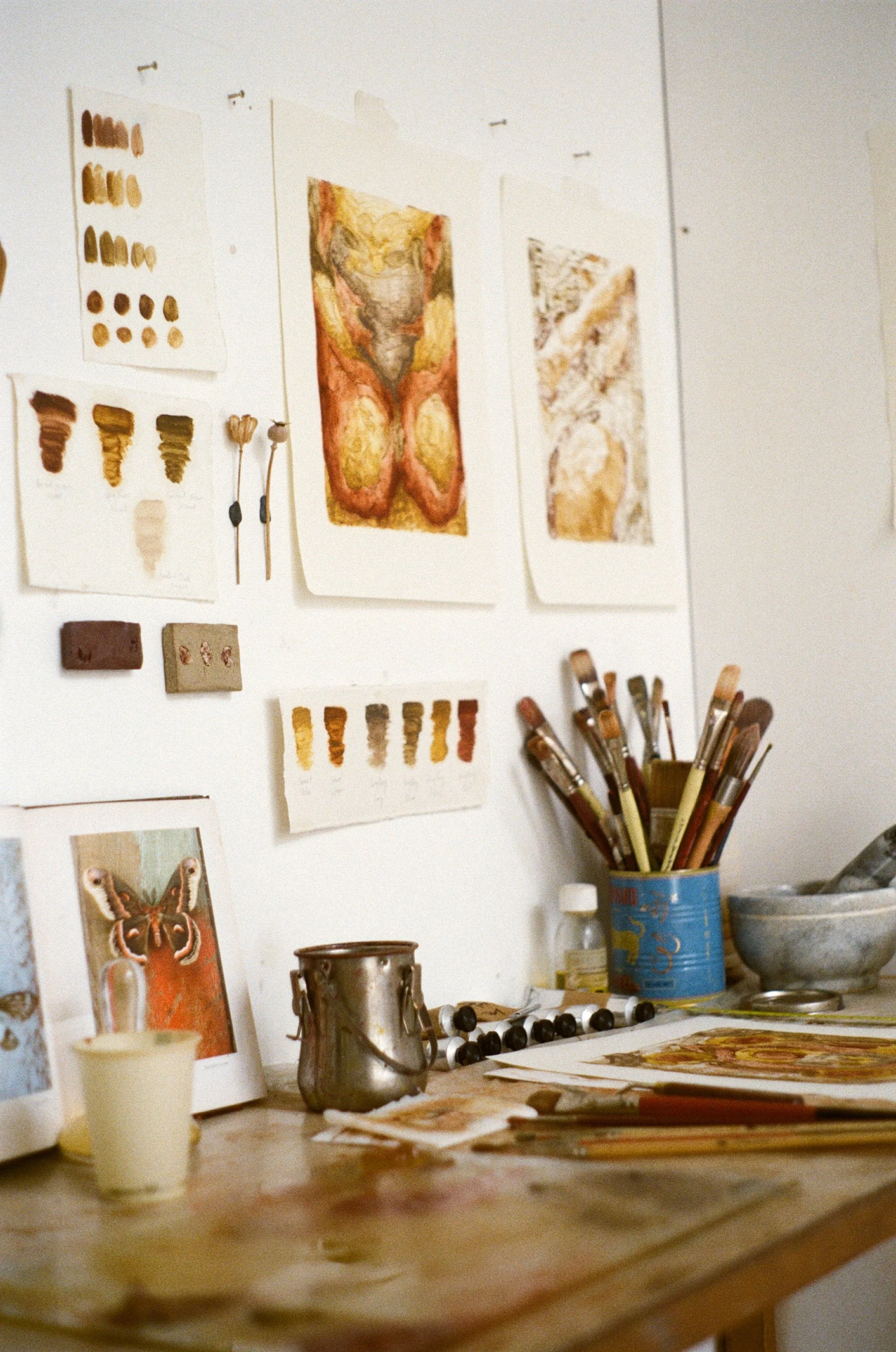 I work predominantly with handmade paints using clays and ochers sourced from various landscapes I have encountered, both in South Africa and the UK. This process is central to my practice, minimising the separation between the artist, landscape and material. The resulting works speak to the intimate relationship between the physical and metaphysical, grounding spiritual reflection in natural matter.